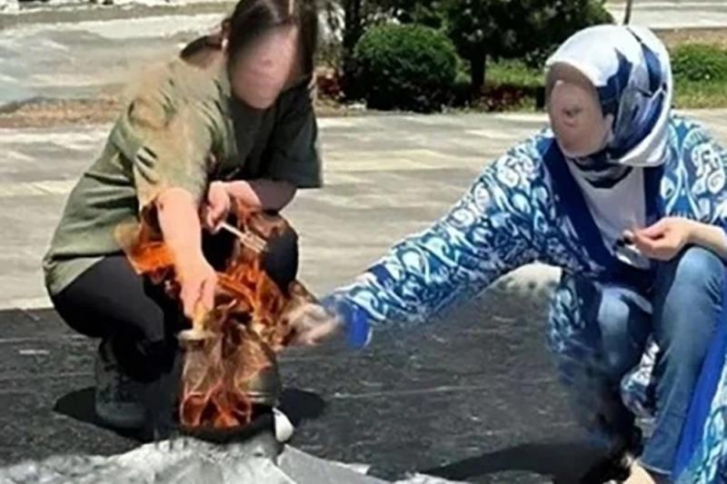Суд установил, что женщины в центральном парке Махачкалы варили кофе в турках на пламени Вечного огня у памятника Воину-освободителю. Кадр видео