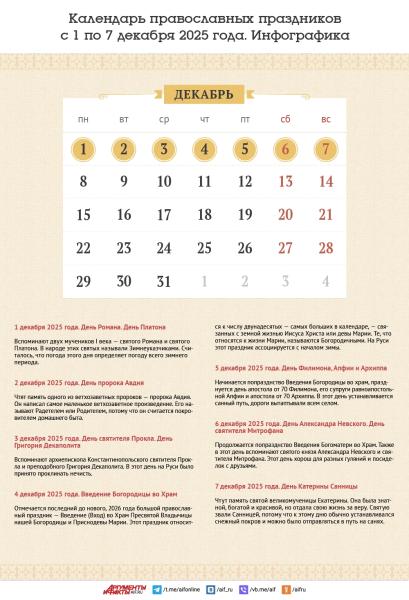 Календарь православных праздников с 1 по 7 декабря 2025 года. Инфографика