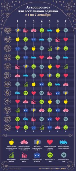 Астрологический прогноз с 1 по 7 декабря 2025 года. Инфографика