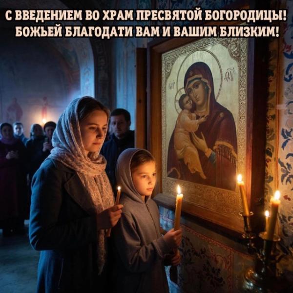 Праздник Введения во храм приходится на седьмой день Рождественского поста. Для всех постящихся допускаются послабления — можно пить вино и есть рыбу. Во время вечерней службы в церкви звучат первые рождественские песнопения – приближая радость появления на свет Иисуса Христа.