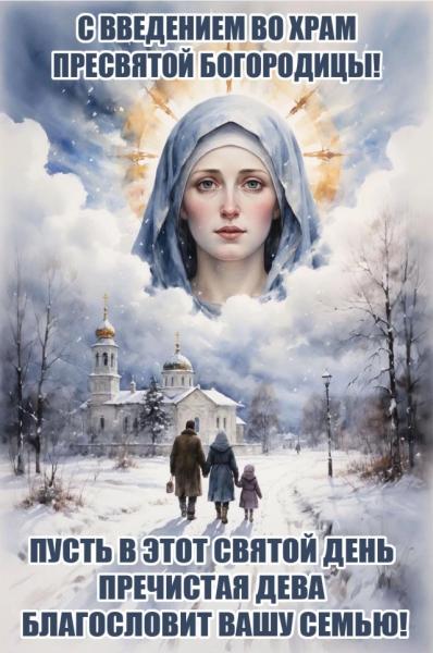 Введение во храм Пресвятой Богородицы – один из двунадесятых праздников, особо почитаемых христианами. В отличие от многих других церковных праздников, он не выходит из числа и отмечается ежегодно в одну и ту же дату – 4 декабря.