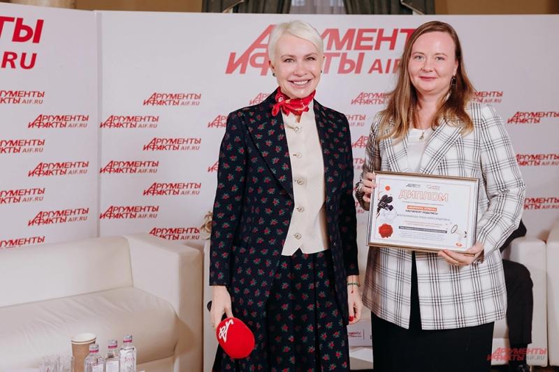 Подпись: Ольга Веретенникова, президент Центра поддержки и защиты детства г. Саранск, победитель третьего курса проекта «Формула успеха» — «Формула успеха. Мастерство коммуникаций» и 1-й заместитель генерального директора ИД «Аргументы и факты» Марина Мишункина. Фото: АиФ/ Ирина Амэ
