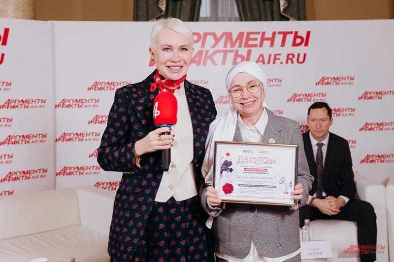 Подпись: Файруза Латыпова, директор уфимского благотворительного фонда помощи тяжело больным детям «Особенные дети», врач-педиатр, врач-неонатолог, победитель третьего курса проекта «Формула успеха» — «Формула успеха. Мастерство коммуникаций» и 1-й заместитель генерального директора ИД «Аргументы и факты» Марина Мишункина. Фото: АиФ/ Ирина Амэ