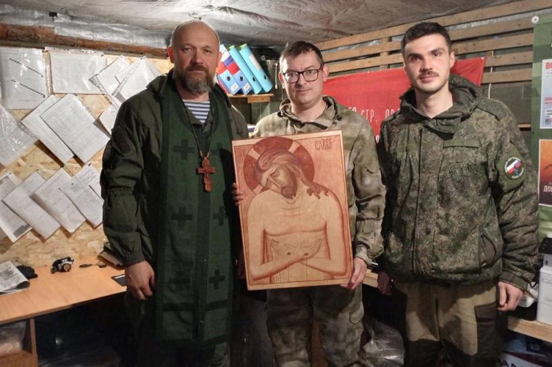 Икону писал долго, несколько месяцев. Последние штрихи давались очень тяжело. Игорь рассказывает, что чувствовал неимоверную усталость. Проведёт одну линию, а словно вагон разгрузил. Когда дописывал икону, с ним произошёл странный случай. Вскрывая посылку из дома, ножом для зачистки проводов проткнул себе артерию на ноге. «Меня зажгутовали, отвезли в госпиталь, зашили артерию. Я вернулся в блиндаж, и первое, что бросилось в глаза, — рана у Христа на иконе от удара копьём — и кровь льётся», — рассказал Игорь.