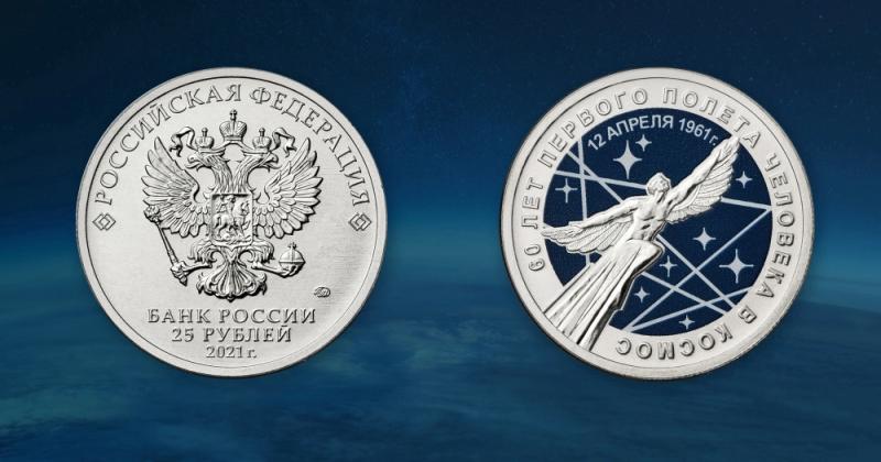 Памятные монеты «60-летие первого полета человека в космос» номиналом 25 рублей. Фото: РИА Новости/ пресс-служба Банка России