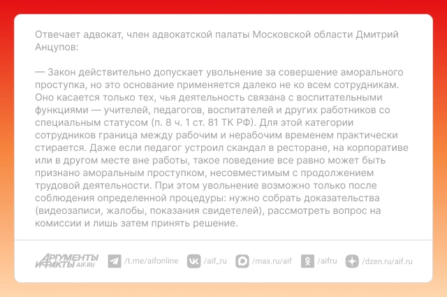 Для остальных работников правила отличаются. Даже если корпоратив организован работодателем и проводится вне офиса, уволить сотрудника только за «аморальное» поведение нельзя. Максимум — дисциплинарное взыскание (например, выговор), и то лишь если нарушение связано с рабочим временем и трудовыми обязанностями.