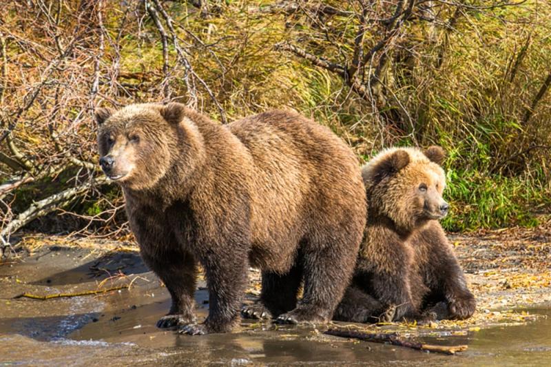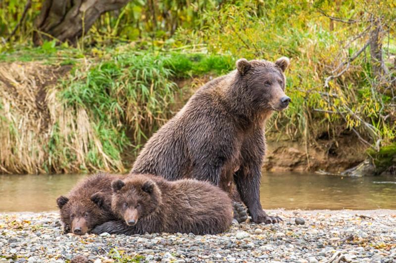 Для того чтобы забеременеть медведице нужно выполнить два ключевых условия. Во-первых, она должна накопить достаточный жировой запас, чтобы пережить зиму самой, и иметь физическую возможность кормить молоком медвежат. Второе важно условие, медведица должна лечь спать в берлогу. Где у нее начинает очень быстро развиваться плод и примерно через восемь недель у нее рождается потомство.