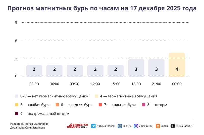 Почасовой прогноз магнитных бурь по московскому времени смотрите в инфографике aif.ru.