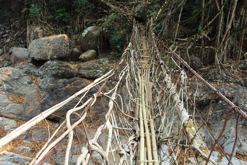 Нонгриат — пятидесятиметровый уникальный природный мост, созданный местными племенами из корней каучука. Находится в тропических лесах индийского штата Мегхалая.