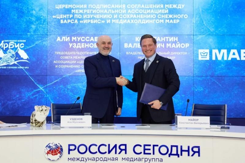 В Москве 22 декабря состоялось подписание соглашения о сотрудничестве между Межрегиональной Ассоциации «Центр по изучению и сохранению снежного барса «Ирбис» и медиахолдингом МАЕР. Задача партнерства — вовлечь миллионы россиян в сохранение культурного наследия.