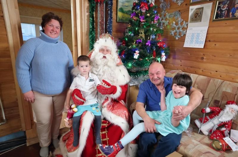 В подмосковном Домодедове зимнего волшебника ждала встреча с многодетной семьёй Чернухиных. Старшему сыну Стасу 17 лет, у него с рождения ДЦП, он почти не говорит и совсем не ходит.