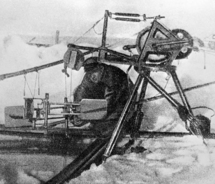 Участник экспедиции дрейфующей станции «Северный полюс — 1» Петр Ширшов работает с гидрологической лебедкой. Фото: РИА Новости