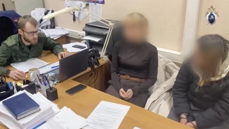 Задержанная (справа) в отделении полиции. Кадр из видео