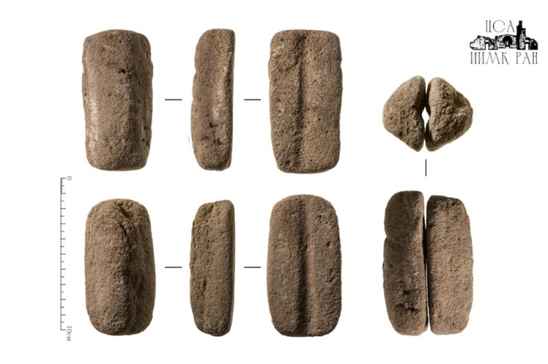 Один из них учёные извлекли из-под земли, разбирая перекрытия могил. Всего внутри кургана насчитывалось девять погребений, и шесть из них были нетронутыми. Правда, инвентарь в них был немногочисленным, но кое-какие находки археологов порадовали. Например, выпрямитель древков стрел — предмет, который практически не встречается в окуневских погребениях.