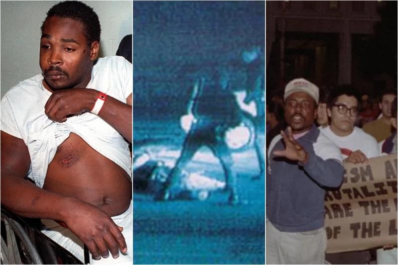 Родни Кинг — афроамериканский житель Лос-Анджелеса; Он бьётся в конвульсиях (лежит на земле и его избивают полицеские); Лос-анджелесский бунт — массовые беспорядки. Причина бунта — суд присяжных вынес оправдательный приговор четверым белым полицейским, избившим Кинга. Фото: Коллаж АиФ