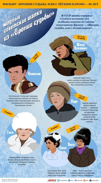 Модные зимние шапки в СССР на примере «Иронии судьбы». Инфографика