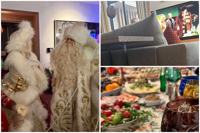 Ксения Собчак пока что ограничилась интерьерами своего загородного дома, где вместе с супругом режиссером Константином Богомоловым она встретила Новый год. На одной из фотографий виден затылок сына Ксении Платона, который смотрит по телевизору «Иронию судьбы». Ксения Анатольевна поделилась и фотографией праздничного застолья: новогодняя скатерть, салатики и хрустальные фужеры бордового цвета. И еще Дед Мороз со Снегурочкой. Сказочные персонажи, судя по всему, приходили поздравлять Платона.