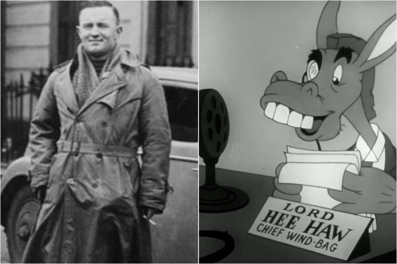 В августе 1939 года Джойс уехал в Германию, а в сентябре уже начал вещать на немецком радио в программе «Говорит Германия»; «Лорд Хо-Хо — главный Ветер Бэг (пустозвон)» из анимационного пропагандистского фильма «Tokio Jokio» 1943 года. Фото: Коллаж АиФ