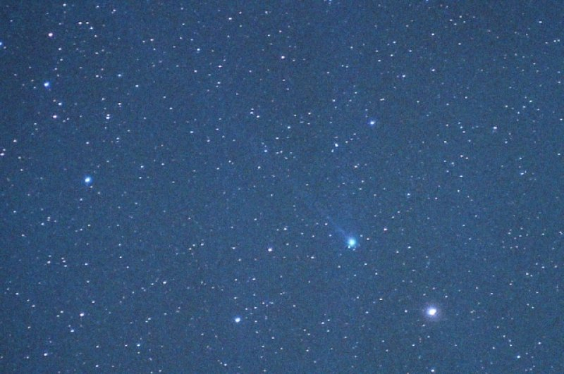 Комета SWAN M4 C2006, если присмотреться внимательно, на фото во весь кадр заметен длинный V-образный хвост. Фото 2016 г. Владимир Крупко