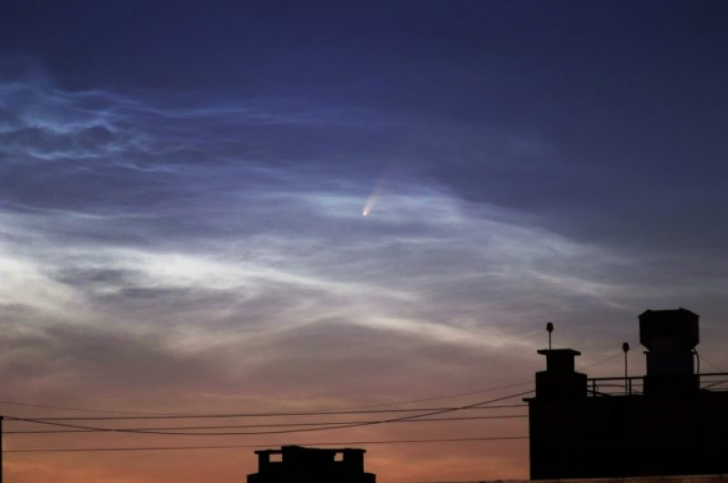 Та же NEOWISE на фоне серебристых облаков. Владимир Крупко