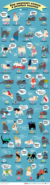 Мяуканье кошки — один из самых узнаваемых звуков на планете. Но если для нас это привычное «мяу», то для англичанина — «meow», а для корейца — «yaong». Это лингвистическое разнообразие возникает из-за особенностей фонетики каждого языка: то, как мы слышим и воспроизводим звуки, зависит от нашего родного наречия. Аif.ru cобрал международные варианты в одной инфографике.