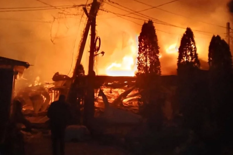 Дроны использовали зажигательную смесь. Площадь пожара составила 500 кв. метров, потушить его удалось лишь к утру. Пресс-служба губернатора Херсонской области