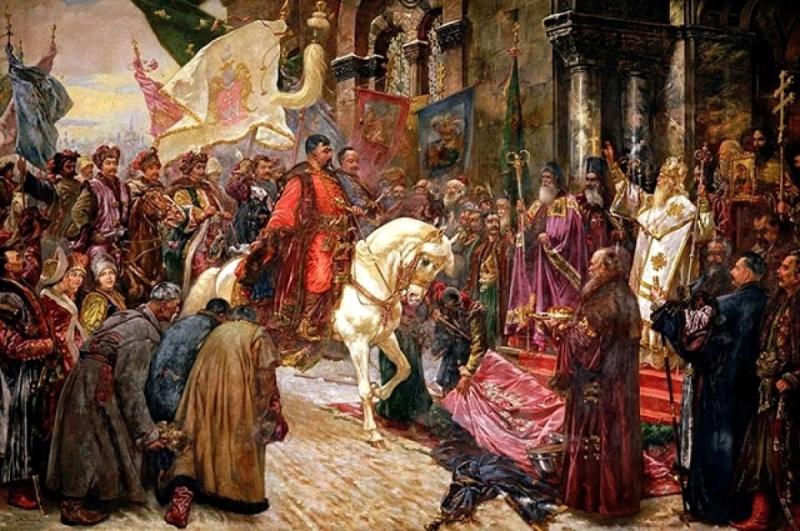 Действительно, что считается главным делом, которому Богдан Хмельницкий посвятил свою жизнь? Правильно — воссоединение разделённых некогда ветвей единого русского народа, которое в историографии прописалось под именем «Воссоединение Украины с Россией».